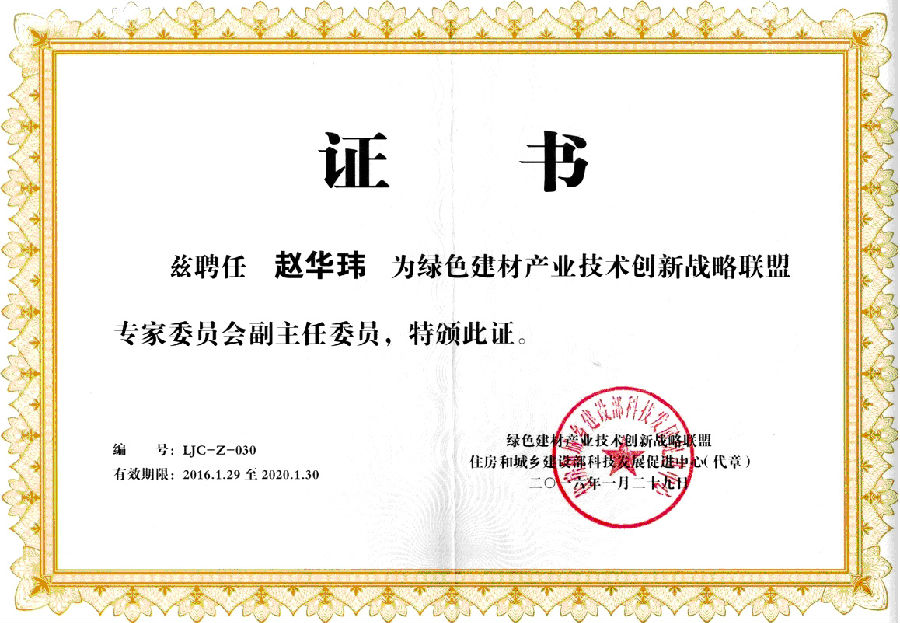 1月29日,2015年度全国绿色建材产业技术创新战略联盟年会在北京举行,建筑工程学院院长赵华玮教授当选为联盟专家委员会副主任委员。