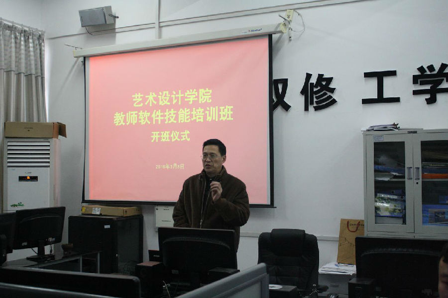 3月8日,艺术设计学院在艺术楼404机房举办了教师软件技能培训班开班仪式。学校组织部部长、人事处处长、教师发展中心主任朱正湖及学院教师参加了培训班开班仪式,开班仪式由艺术设计学院院长姜为青主持。